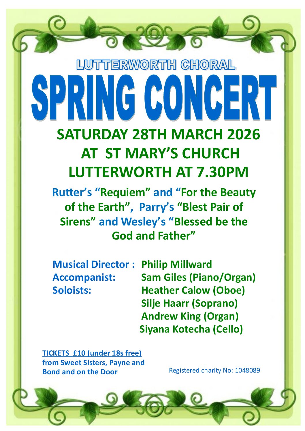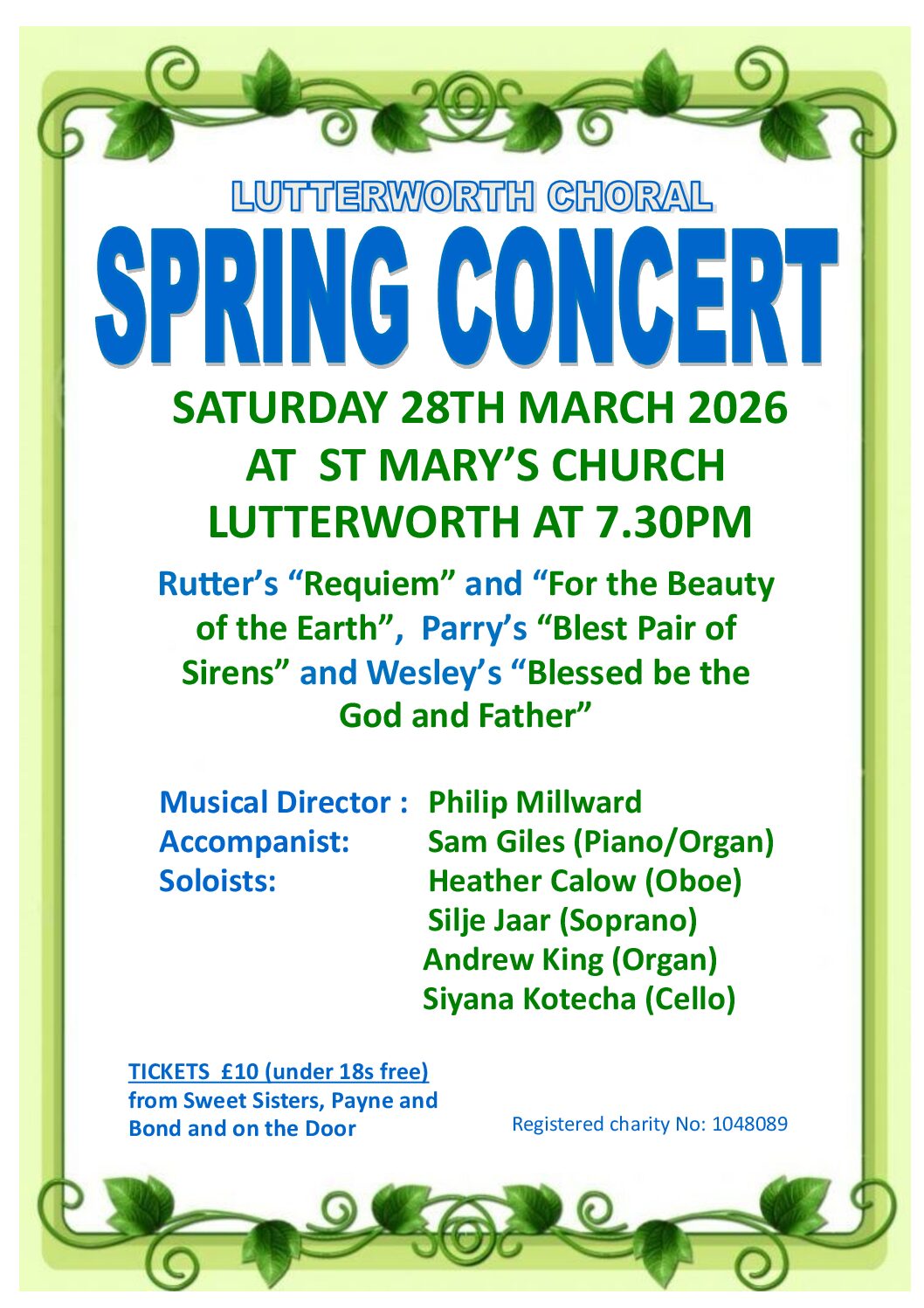 Come and hear the Choir sing Rutter’s striking “Requiem” in Philip Millward’s first concert as Music Director. Parry’s powerful “Blest Pair of Sirens” (performed at the 2011 royal wedding) features prominently in the first half.